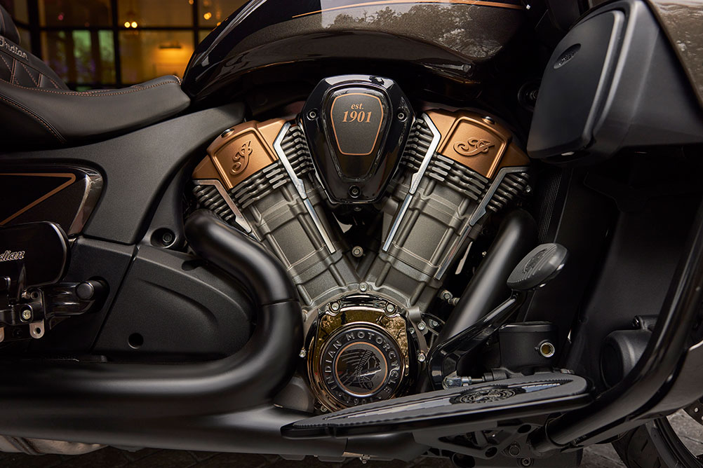 Das Herzstück der Indian Pursuit Elite ist der flüssigkeitsgekühlte PowerPlus Motor mit 108 ccm. Die klassenbesten 90 kW Leistung und 178 Nm Drehmoment liefern unglaubliche V-Twin-Performance und -Durchzugskraft.