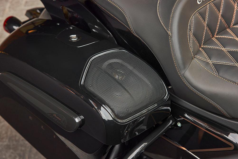 Ein Soundsystem, das Straßen- und Motorgeräusche locker übertönt: Powerband Audio arbeitet nahtlos mit Ride Command zusammen und sorgt dank der Frontverkleidungslautsprecher mit eingebauten Verstärkern und 9-Band-Equalizer mit kristallklarem Sound für den richtigen Groove auf deiner Tour.